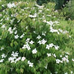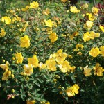 Les légumes et les fruits n’apprécient pas trop les fortes précipitations de ces dernières semaines, mais les arbres et les arbustes, eux, sont enchantés. L’une des premières choses que l’on remarque en se promenant (10), c’est le débordement de verdure. De nouvelles feuilles apparaissent sans cesse et offrent au regard toute une panoplie de tons de vert, de jaune (comme le sureau du canada – 7 -), de rose et de pourpre. Les weigelias et autres deutzias, présentés en mai dans « l’allée royale », ont terminé leur floraison. D’autres arbustes comme le millepertuis (1) ont maintenant pris le relais. Parmi les « précoces », seul le Cornus Kousa, dont je vous avais déjà parlé, est toujours en beauté. Ses fleurs étoilées sont devenues plus grosses et sont d’un blanc lumineux (12).