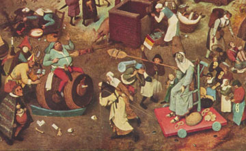 Cet acte ultime d’indiscipline va pousser l’autorité royale à réagir. Ses représentants n’ont en effet pas dit leur dernier mot et attendent leur heure pour reprendre les affaires en main. Tapi dans l’ombre de sa bourgeoise demeure, le juge Guérin prépare sa revanche. Les incidents se multiplient dans les rues de la ville. La colère des insurgés grandit face au silence d’un pouvoir qui mise sur le pourrissement de la situation : aucune des revendications formulées par Paumier et sa troupe n’a abouti et celles-ci deviennent de plus en plus radicales. S’ils réclament, au départ, plus de justice dans la répartition de l’impôt, les insurgés finissent par exiger sa suppression pure et simple… Début février 1580, artisans et paysans défilent dans les rues de la ville, agitant épées et bâtons et clamant bien haut qu’avant trois jours, « la chair du chrétien se vendra 6 deniers la livre ». Le terme de « chrétien » n’a pas vraiment une connotation religieuse (on ne veut pas faire la St Barthélémy à l’envers) mais il désigne surtout les riches possédants, ceux qui contrôlent tout : pouvoir politique, économique et judiciaire (*). L’heure tant attendue par les notables bafoués dans leurs privilèges se présente la nuit du lundi 15 février au Mardi Gras. Après une année complète de révolte et d’insoumission aux lois, le vent tourne… Selon Suzanne Chappaz-Wirthner (**), à travers l’épisode de Romans, le carnaval va révéler certains de ses rouages les plus mystérieux : « L’exemple de Romans fait apparaître le carnaval comme un « outil social » dont disposent les différents groupes au sein d’une collectivité pour exprimer les tensions et les antagonismes qui les dressent les uns contre les autres. » L’auteure précise : « Le carnaval n’est pas rite d’intégration ou rite de subversion; il est par essence ambivalent et présente simultanément les deux aspects; seul le contexte dans lequel il se déroule détermine le pôle qui l’emporte. » Le carnaval des temps anciens joue un tout autre rôle que celui qui lui est dévolu de nos jours…