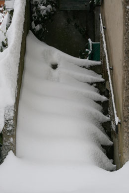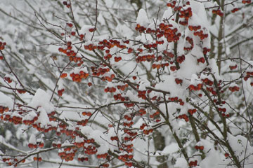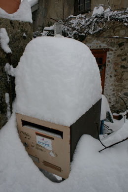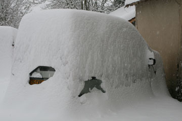 30 cm de neige et notre société est – soi-disant – totalement désorganisée : plus de courant électrique pour les Bretons (ça leur apprendra à avoir, en son temps, refusé les bonnes vieilles centrales nucléaires de papa), plus de pièces détachées dans les ateliers, plus de télé dans les foyers (même le micro-ondes refuse de micro-onder !)… Madame Beaufre pleine de bon sens bien de chez nous (à droite de l’agence du Crédit Agricole) ne manque pas de se poser les bonnes questions : « Pourquoi les pouvoirs publics n’ont-ils rien fait ? » (variante locale « Pourquoi Madame le Maire n’a-t-elle pas acheté du sel avant ?) ou encore « Pourquoi les chasse-neige ont-ils attendu les premiers flocons pour se mettre en route ? S’ils étaient passés avant (???) il n’y aurait pas tous ces tracas ». Il est évident que si les services de l’équipement déneigeaient dès le mois de septembre, le responsable des chutes de neige, caché derrière son nuage, serait complètement dégoûté et arrêterait de faire le con… Curieusement, je n’ai pas entendu la moindre remarque sur le fait que les prix de l’immobilier poussaient les travailleurs à habiter de plus en plus loin de leur lieu de travail ou sur les risques d’approvisionnement que faisaient courir à la société la soi-disant miraculeuse gestion des stocks en « flux tendu ». Heureusement que la nature ne fonctionne pas de la même façon et n’a pas adopté un concept aussi débile (admirez le bel entrepôt rempli de nourriture sur la photo suivante). Même une thématique aussi banale que les caprices de la météo pourrait amener les journaux « d’information » à élever un peu le niveau du débat. Mais on s’égare, on s’égare… ce n’est point là le métier de gens dont le boulot consiste à survoler les chiens écrasés à la plus basse altitude possible. Vous confondez « Antenne 2 » et « France Culture » mon bon Monsieur, et puis BHL n’a rien à déclarer sur la question ! De grâce alors, évitez-nous les lieux communs et cantonnez-vous à l’angle artistique : les paysages enneigés paradis des photographes. Autre possibilité : n’interviewez que les gamins pour vos micros trottoirs… Leurs parents n’ont que la misère de leur propre existence à étaler… Eux ont encore des flocons dans les yeux !